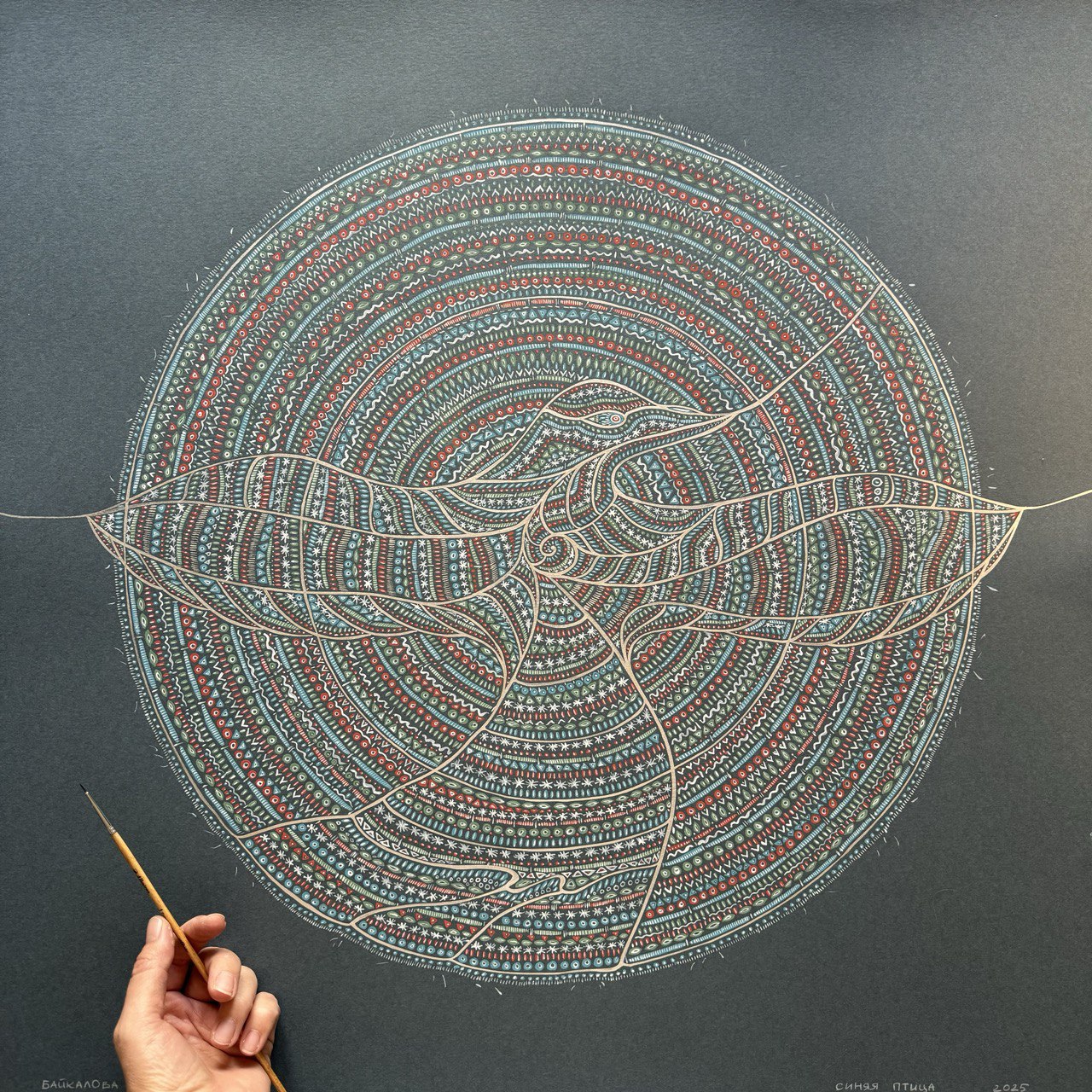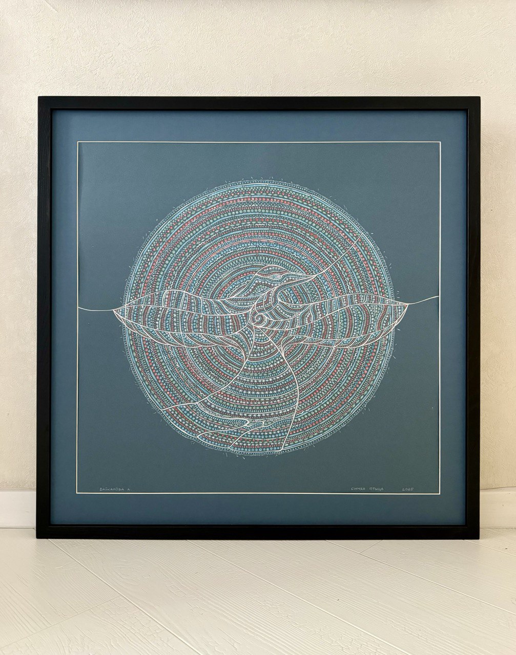 Эта работа — энергетический импринт воды Байкала, источника моего творчества, корня моей фамилии. Как и каждая моя работа, это оберег, несущий свой уникальный смысл и образ. Я создала эту графику, как тотем для проекта выставки "Род" 2025.